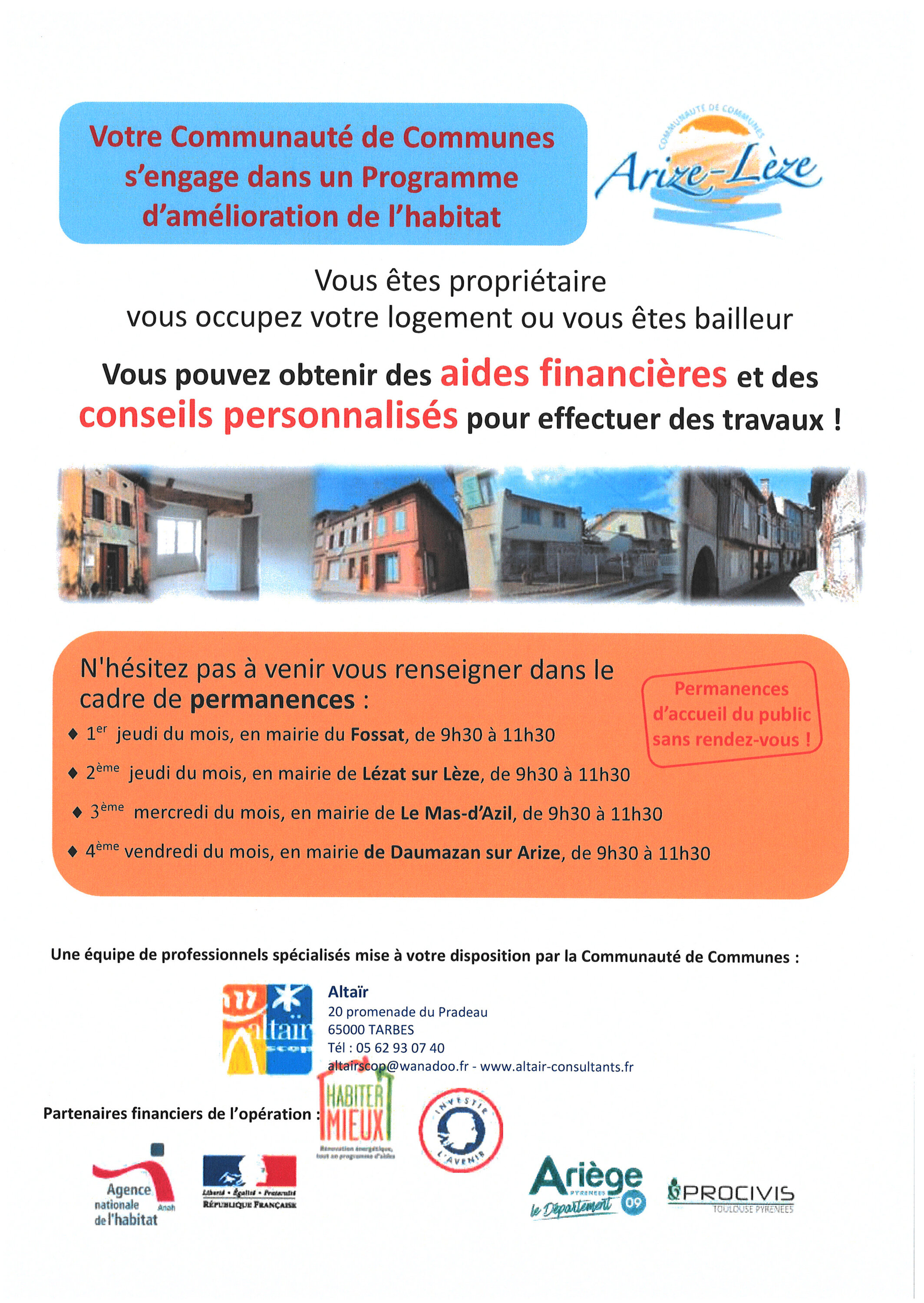 Après appel d’offres, l’animation et le suivi du programme ont été confiés au cabinet ALTAIR qui assure l’accueil et le conseil des propriétaires dans le cadre de permanences.