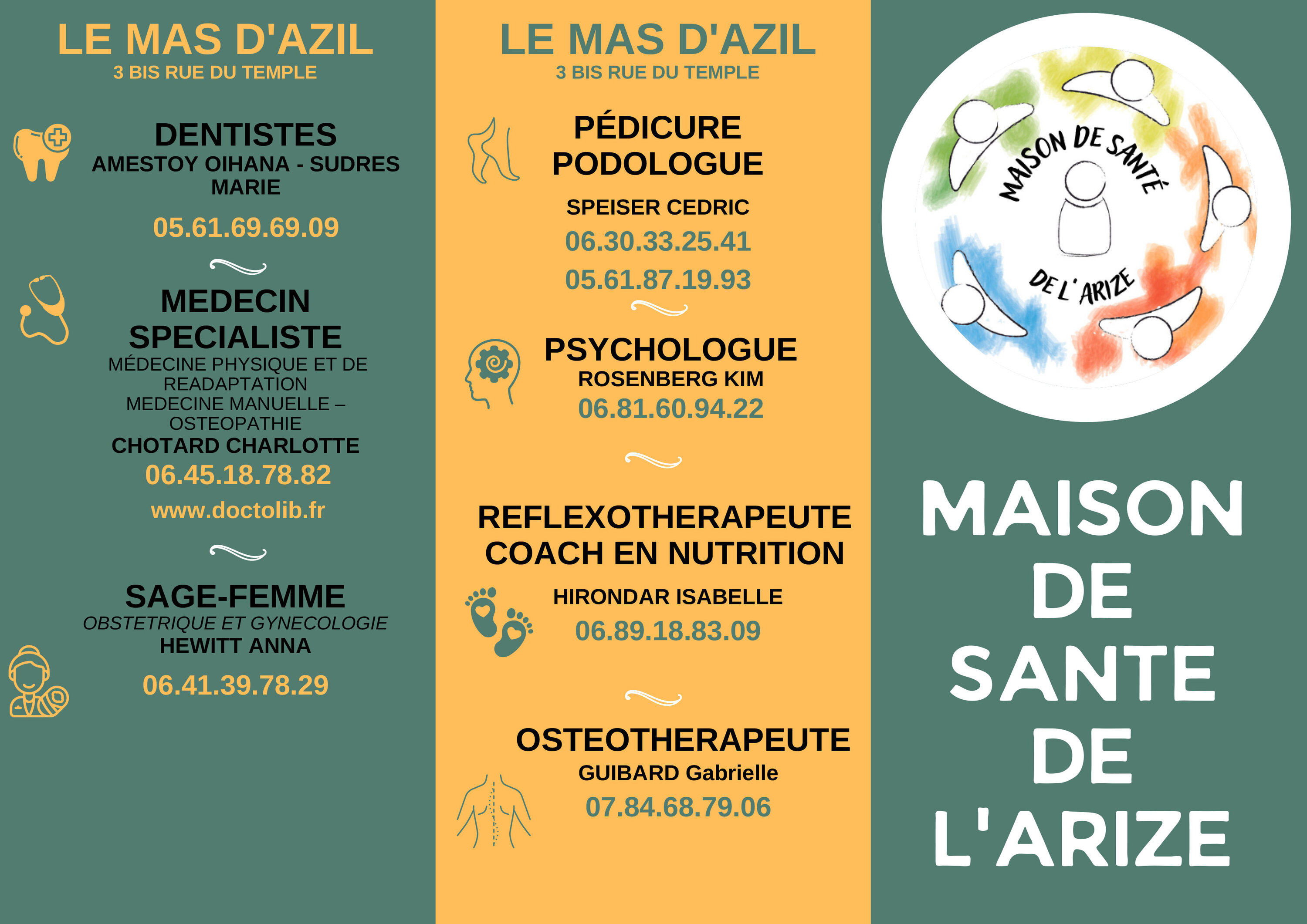 Liste des Praticiens au Mas d’Azil - 3 bis rue du Temple